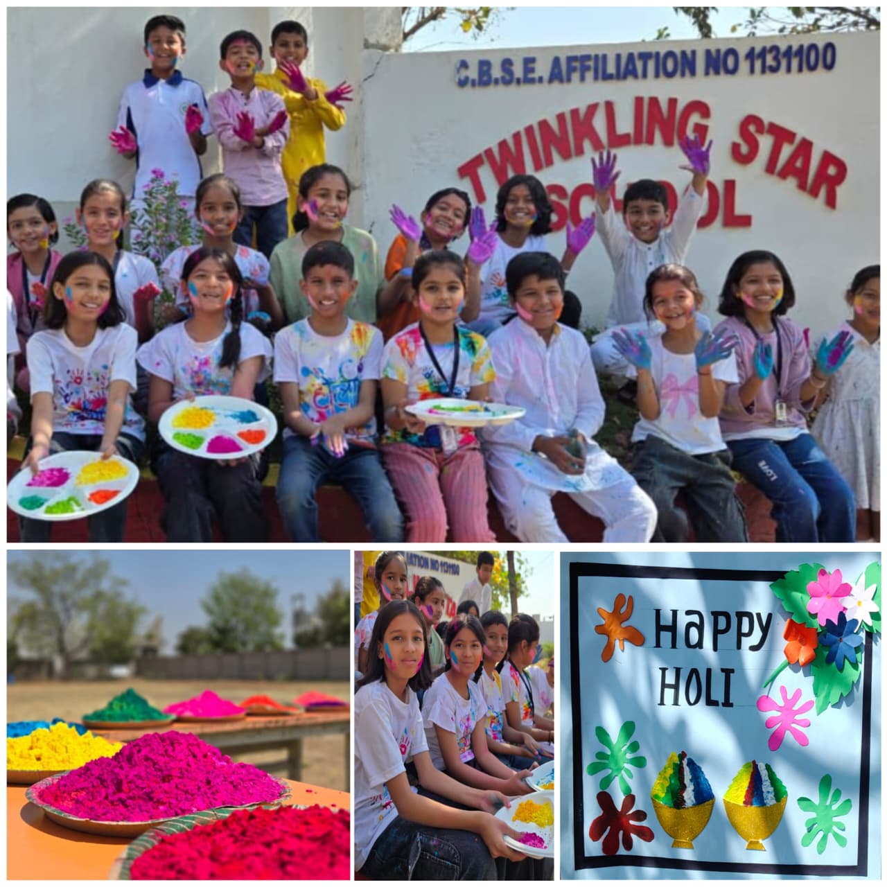 Twinkling Star School came alive with vibrant hues and cheerful laughter as students and teachers enthusiastically celebrated the festival of Holi on the school premises. The celebration aimed to spread the message of unity, happiness, and togetherness among students.