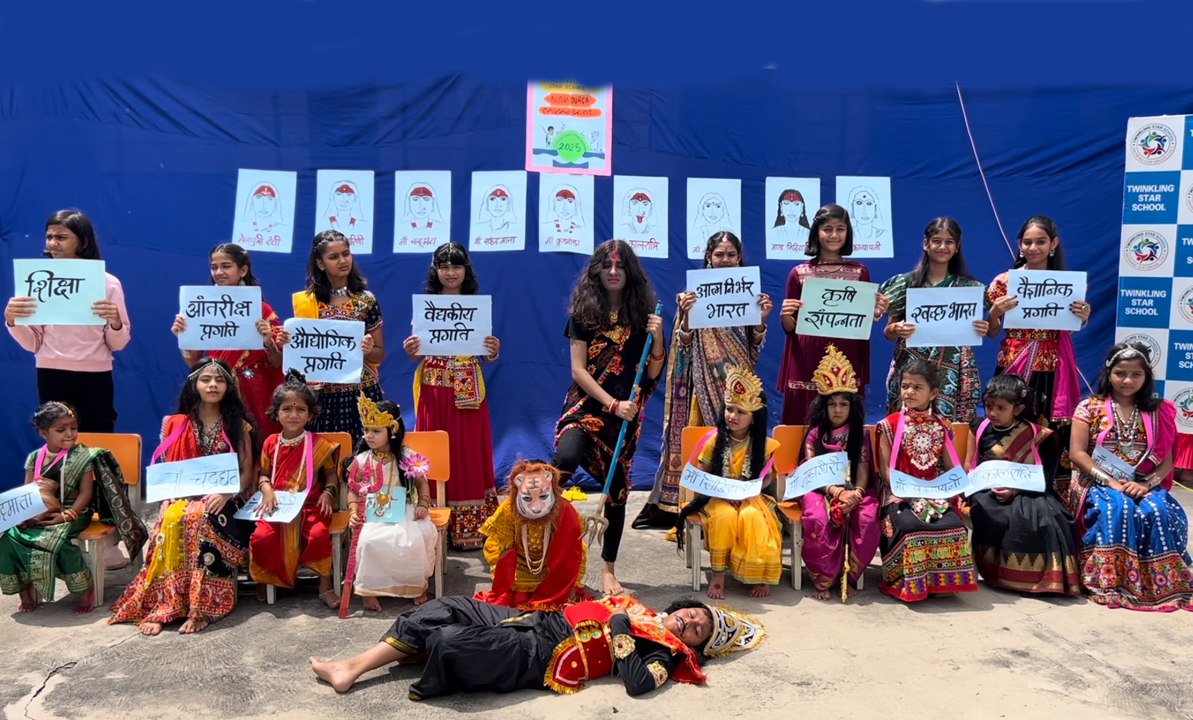 Twinkling Star School celebrated the auspicious occasion of Durga Navratri with great zeal and devotion. The special program was conducted by the KG section girls, who came dressed as the nine divine avatars of Maa Durga, radiating grace and power.