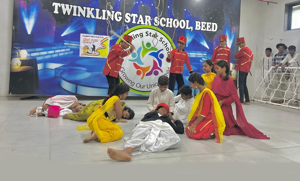 A group of students presented a powerful skit depicting key moments from the movement, including Gandhi’s “Do or Die” speech and the mass protests.